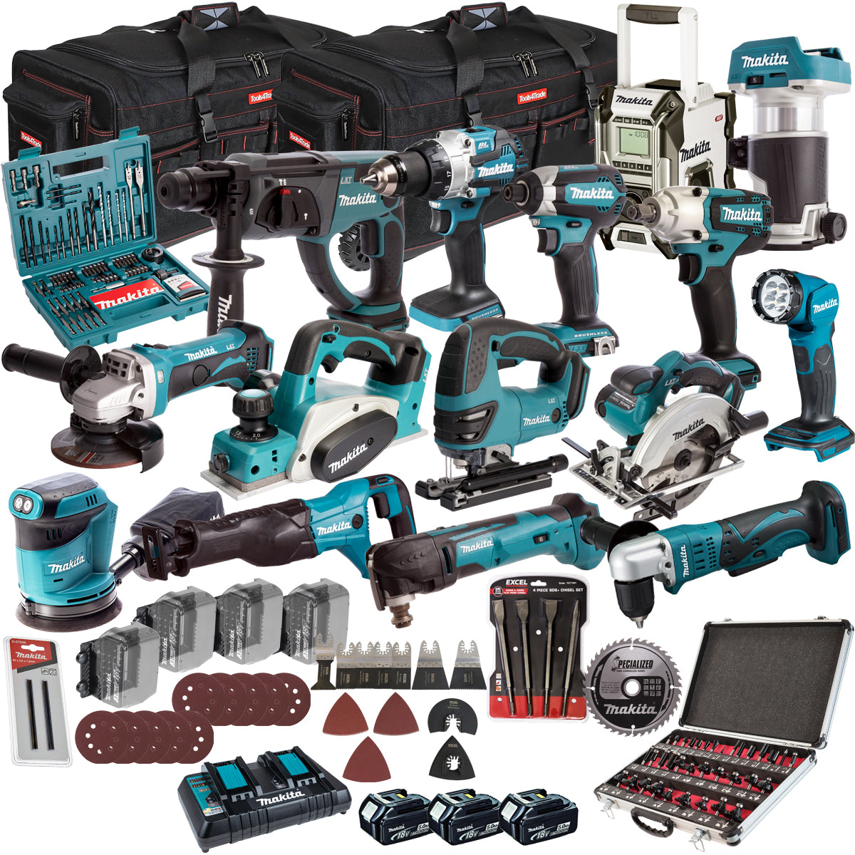 Makita 18V 15 Piece Combo Kit with 3 x 5.0Ah Battery Charger & Accessories Set T4TKIT-17220