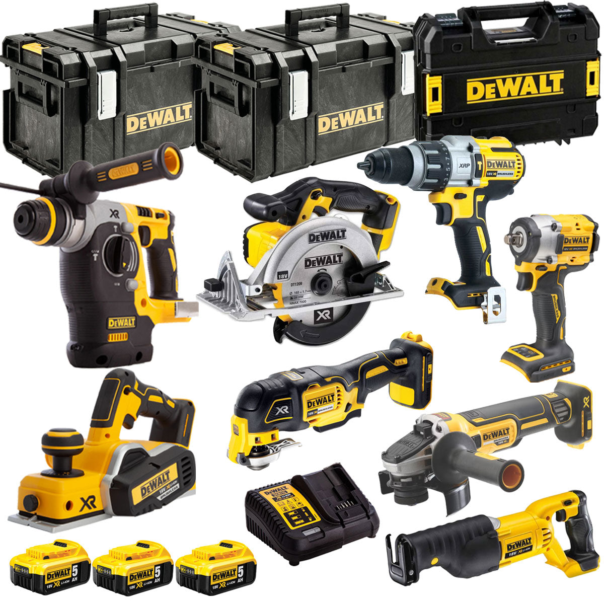 Dewalt 18V 8 Piece Power Tool Kit with 3 x 5.0Ah Battery Charger & Toughsystem Box T4TKIT-12843