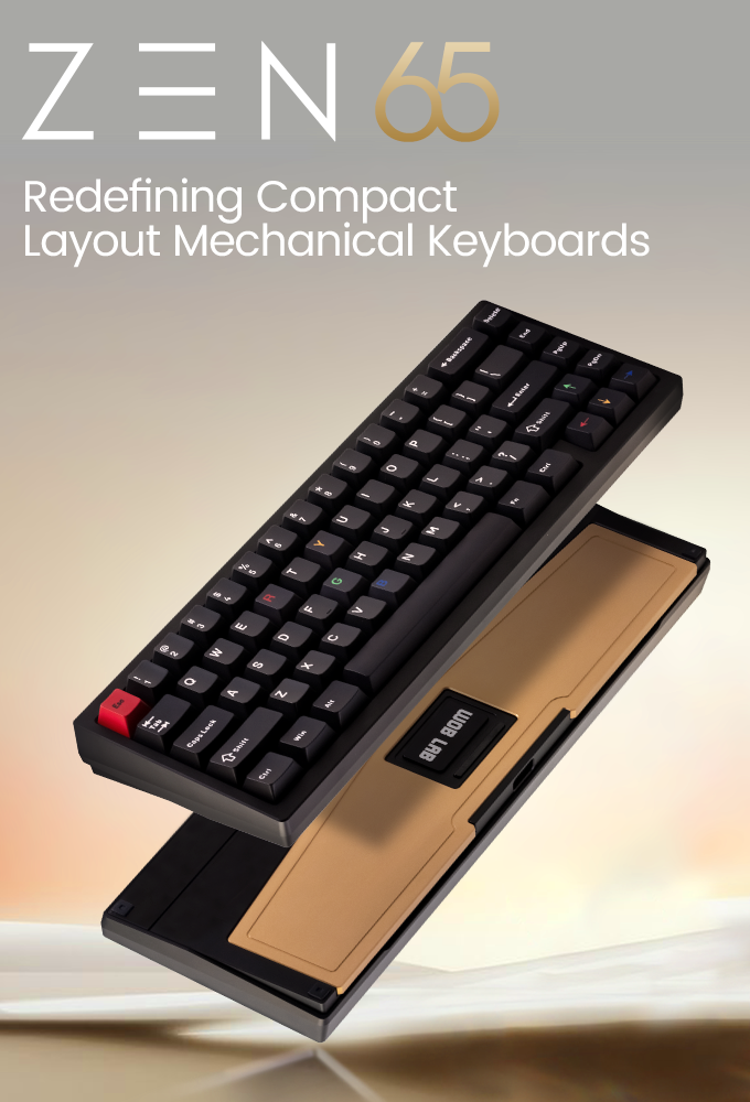 The ZEN 65 mechanical keyboard is a premium 65% keyboard that blends compact design with high-performance features. With a brass cavity for deep acoustics, ultra-low 19mm front height for ergonomic comfort, and gasket mounting for a soft, balanced feel, ZEN 65 is crafted for typing enthusiasts who want both style and performance.