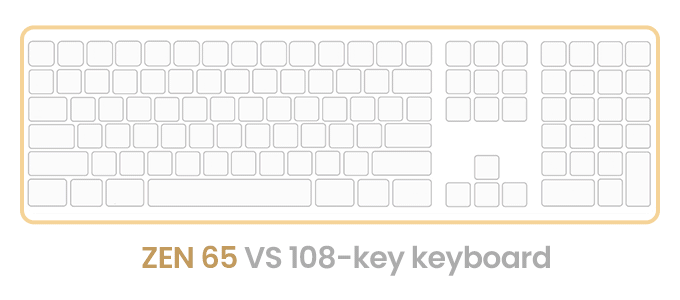 ZEN 65 only takes up 65% the space of a 108-key keyboard.