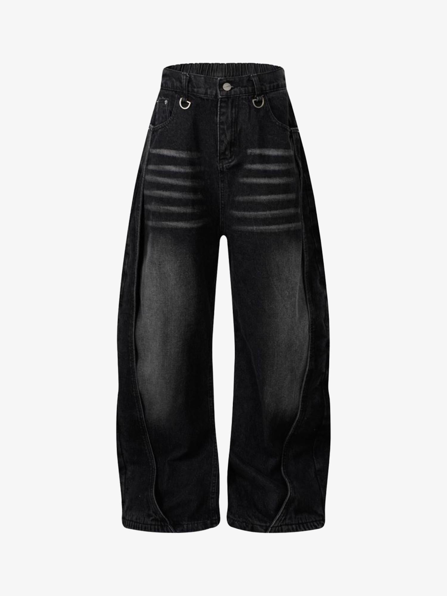Washed Distressed Deconstructed Split Barrel Jeans - 2359