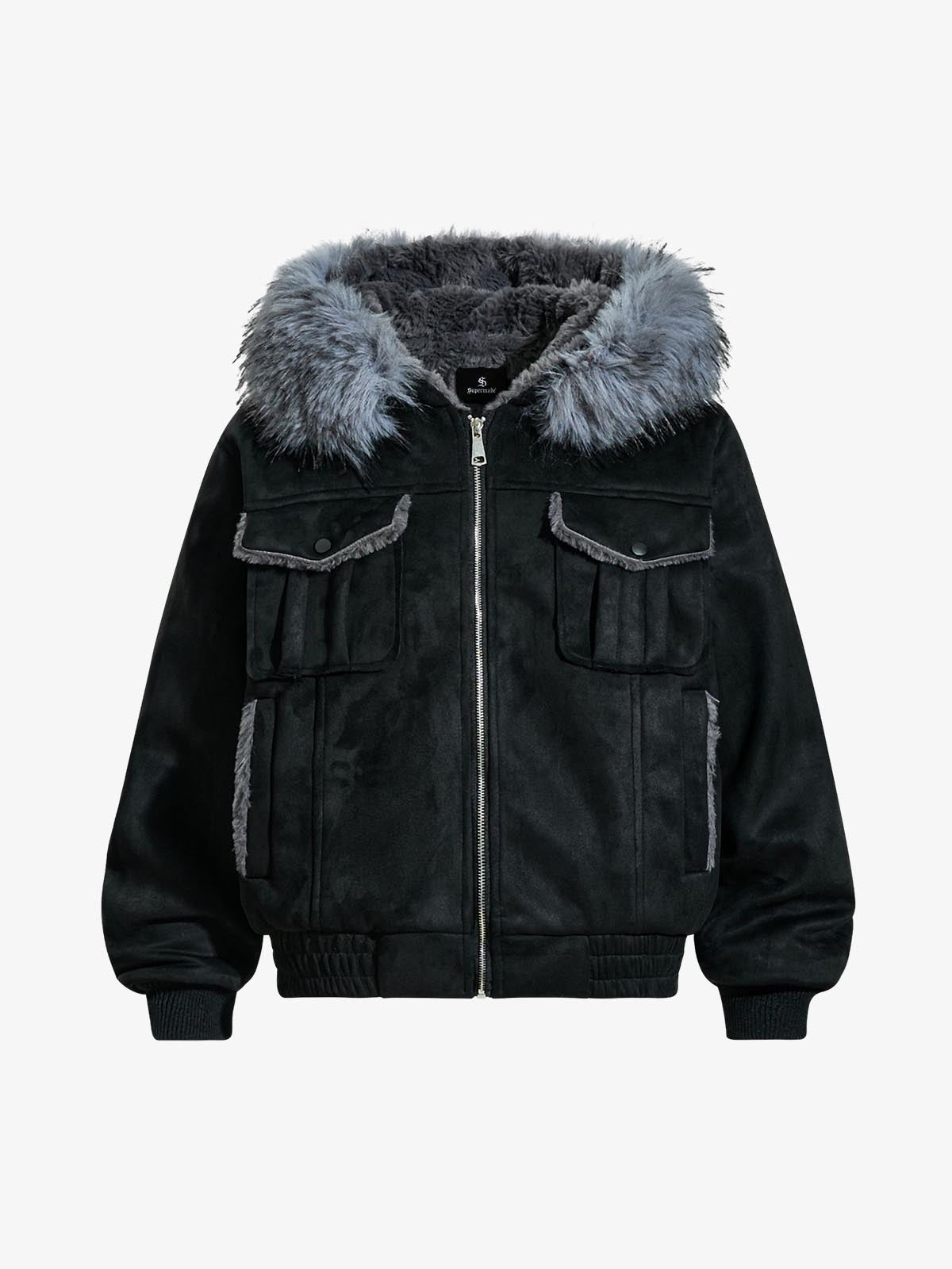Faux Fur Collar Fleece-Lined Utility Zip-Up Jacket