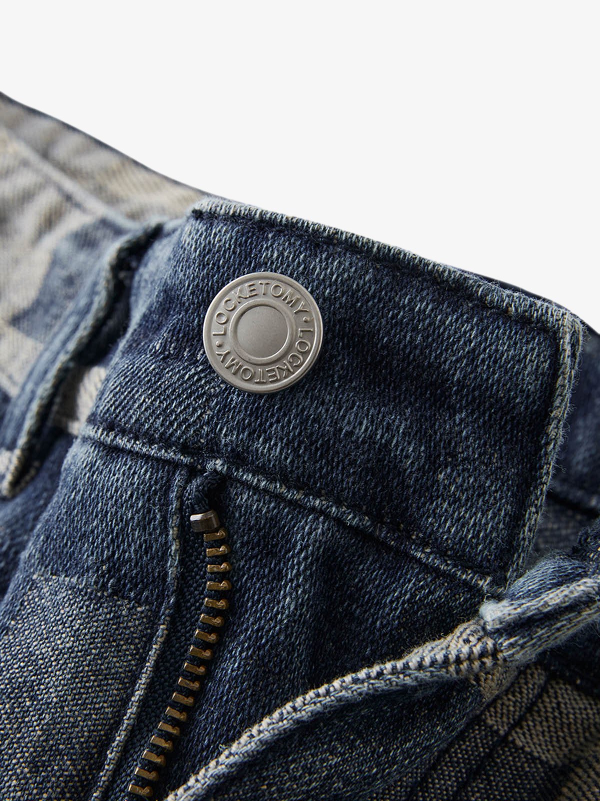 Thesupermade Checkerboard Jacquard Wide Leg Jeans - 2193